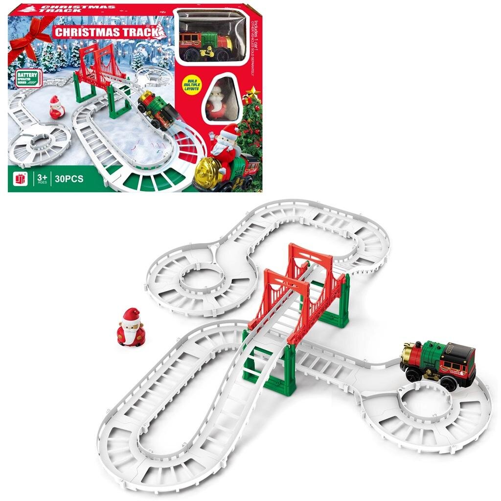 Pociąg-kolejka na baterie, w zestawie z figurką Mikołaja oraz torami do złożenia. Ogromną zaletą jest świąteczne opakowanie. przeczytaj całość