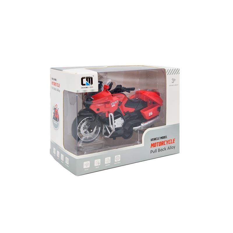 Cechy produktu:- motocykl to świetna propozycja dla wszystkich dzieci uwielbiających prędkość, ściganie i zabawę pojazdami,- odznacza się sportowym wykonaniem z detalami oraz ruchomymi elementami, które dodatkowo urozmaicają zabawę,- został wyposażony w obrotowe koła z funkcją napędu pull&back,...