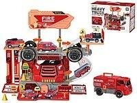 parking - baza straży pożarnej, metalowe pojazdy, 46 części, wym.rozłożonego 35x35x28cm; 31x20x14cm, Box przeczytaj całość