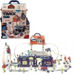 Zestaw kolejka w miasteczku 197 elem. Zasilanie lokomotywy 2xAAA (brak w zestawie) Wymiary po rozłożeniu: 100 x 52 x 45 cm Wymiary opakowania: 25 x 16 x 29 cm Wiek 3+ przeczytaj całość
