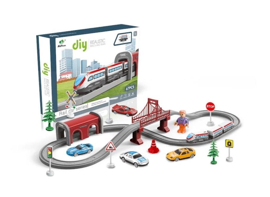 W zestawie 67 elementów, kolejka, tory, autka, figurka, znaki przeczytaj całość