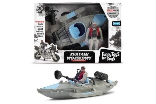 W ZESTAWIE: FIGURKA ŻOŁNIERZA OK. 11 CM., KAJAK, AKCESORIA, WYM. OPK: 24 X 17 X 7 CM., 3+ przeczytaj całość
