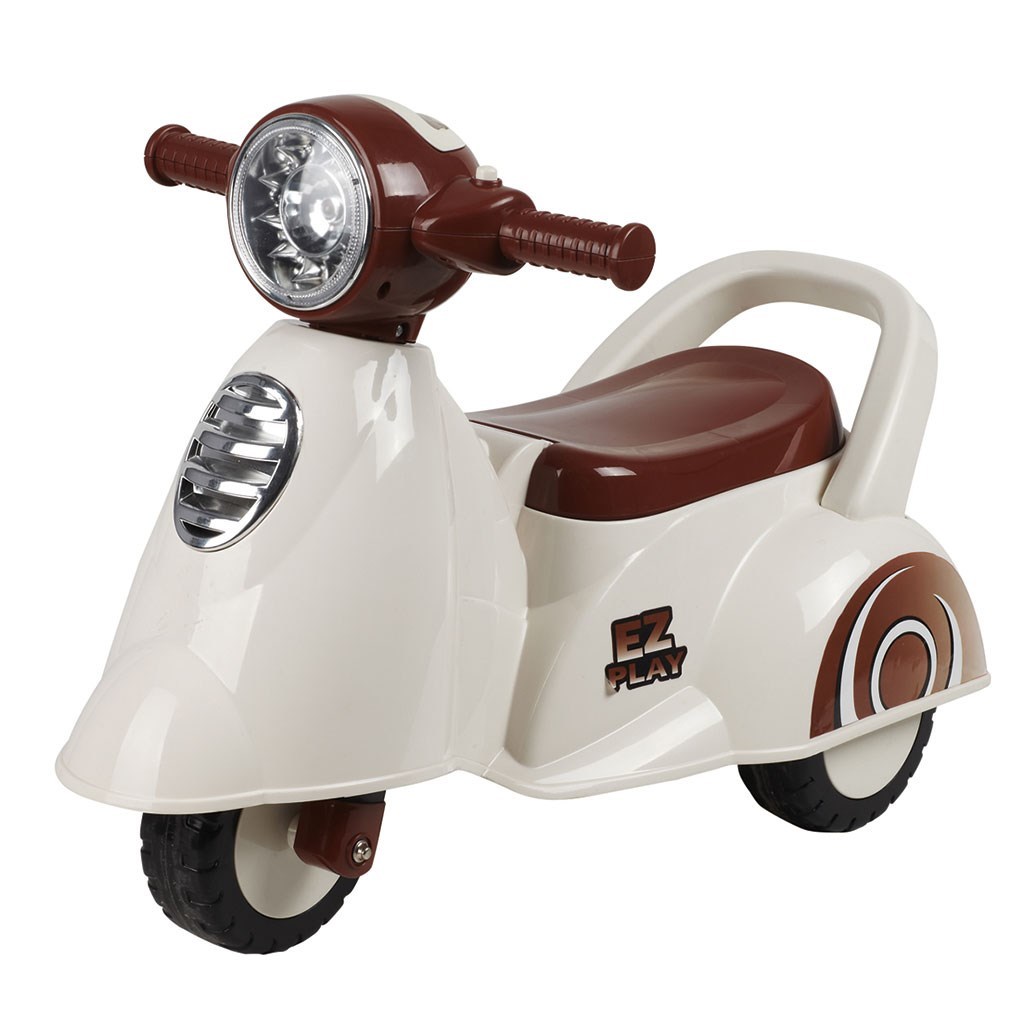 Dětská motorka Baby Mix ve tvaru skútru. Motorka má na řídítkách tlačítko, po jeho zapnutí hraje melodie, rozsvítí a rozblikají se světla. Po zmáčknutí druhého tlačítka se ozve klakson. Je vyrobené z kvalitního plastového materiálu. Je to skvělá a bezpečná hračka. Pomáhá rozvíjet motorické...