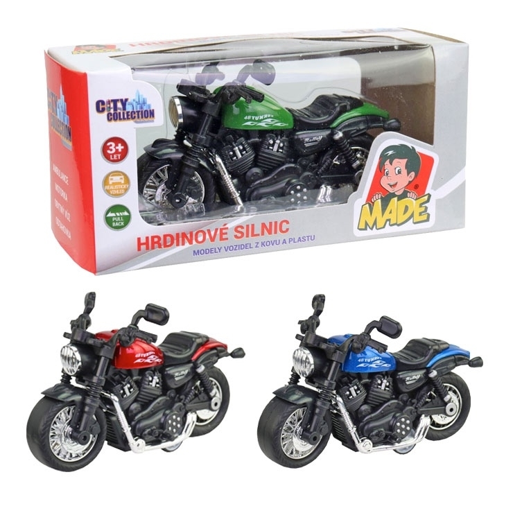 Motorka kovová, zpětný chod, 10,5 cm.Hračka je určena pro děti 3+.Rozměr hračky je 10.5 x 5.6 x 6.8 cm.Materiál hračky je kov.Balení hračky je box.Produkt je určený pro kluky.Baterie nejsou součástí balení. przeczytaj całość