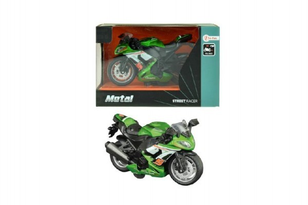 Motorka silniční zelená kov 12cm na zpětný chod v krabičce 15x10x9cm