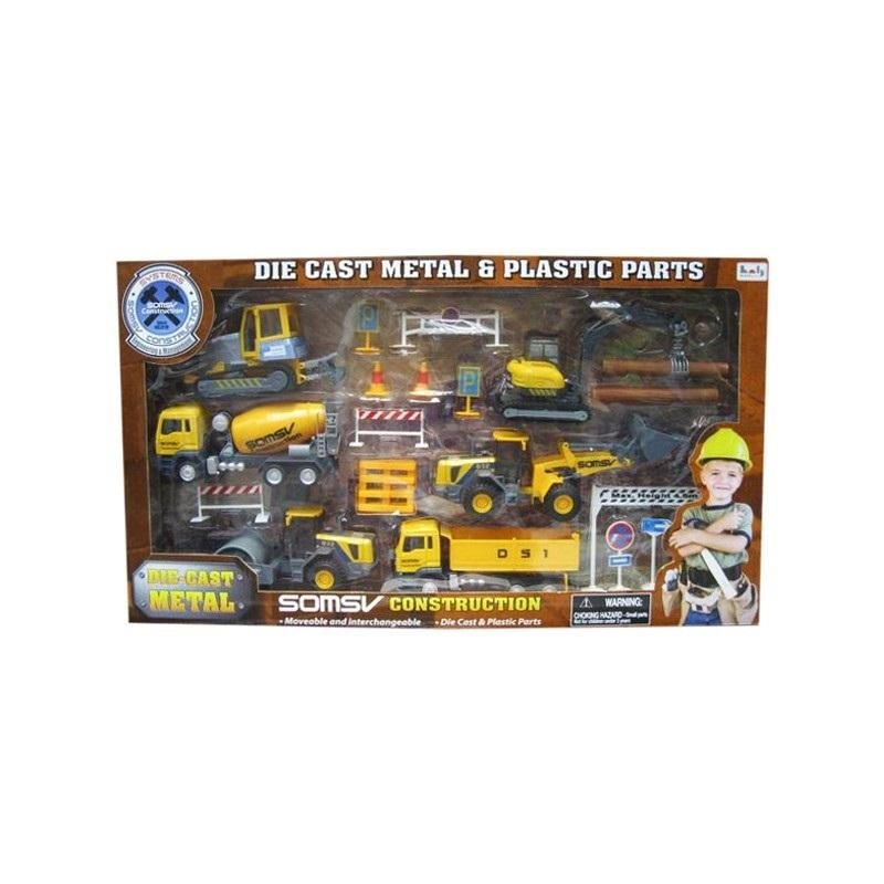 Zestaw metalowych pojazdów budowlanych