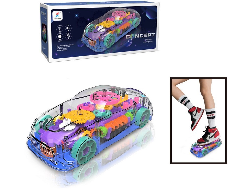 Auto s ozubenými kolečky, na baterie. se světlem a hudbou, 20,5 x 9 x 7 cm