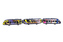 Graffiti vlaková souprava RCVlak graffiti set RC má rozměry 117x66 cm, délka trati 374 cm. Součástí balení je mašinka a 2 vagóny, koleje, ovladač s přísavkou, stanice, výhybka, stromy, značky. Magnetické spojení vagónů, světelné a zvukové efekty. Ovladač - jízda dopředu, jízda dozadu.Baterie 3xAA...