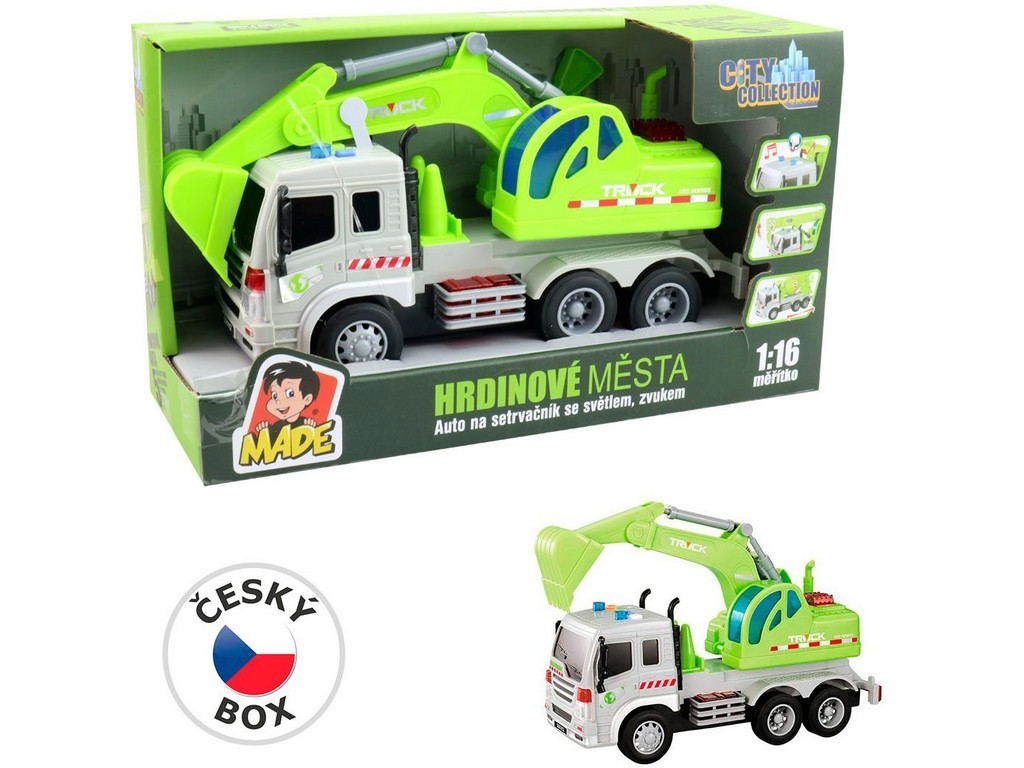 Auto bagr na setrvačník, se světlem a zvukem, na baterie, 28,5 x 10 x 15,5 cm