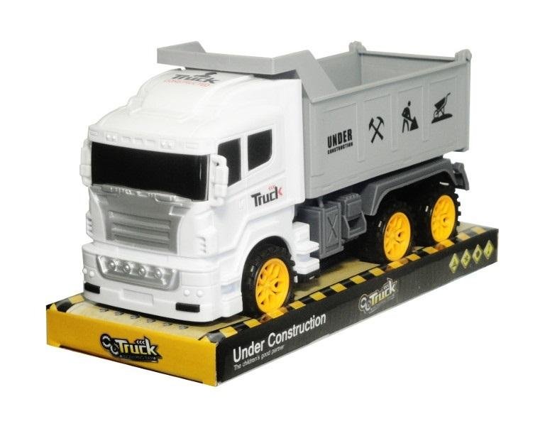 Zabawka ciężarówka wywrotka na napęd cierny. #&Produkt zapakowany w kartonową podstawkę z przezroczystym kloszem. #&Zabawka dla dzieci od 3 lat. #&Podane wymiary stanowią wymiar opakowania. przeczytaj całość