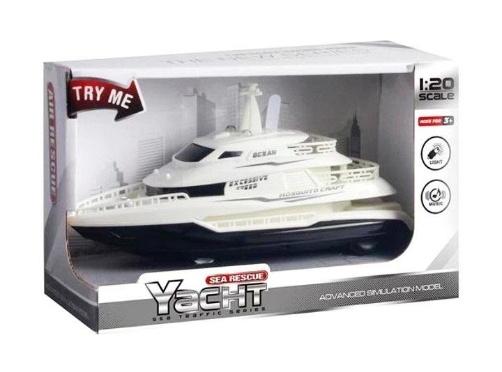 Plastikowy jacht dla dzieci. Popłyniesz w nim w niejedną podróż. Zabawka świeci kolorowym światełkiem i wydaje dźwięki klaksonu oraz dźwięki ostrzegawcze. Zabawka działa na baterie typu AG13. Baterie znajdują się w zabawce. Produkt zapakowany w kartonowe opakowanie z okienkiem. Zabawka dla dzieci od 3 lat. Podane wymiary są wymiarami opakowania.