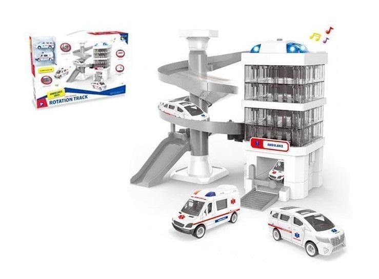 Baza pogotowia to miejsce z którego ratownicy ruszają aby ratować komuś życie. W tej bazie znajdują się 2 karetki. Zabawka świeci kolorowymi światełkami i wydaje dźwięki.Podane wymiary są wymiarami opakowania.Zabawka dla dzieci od 3 lat. Produkt zapakowany w kartonowe opakowanie. przeczytaj całość