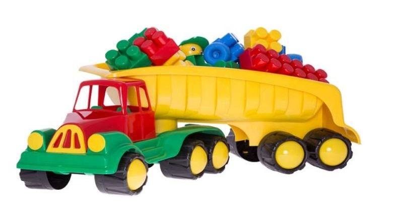 Samochód ten ma aż 70 cm długości i skrętną naczepę. Dzięki dużej ładowności, każdy chłopiec będzie mógł nim przewieźć swoje najcenniejsze skarby. W proponowanym zestawie znajdują się klocki K3 o szer. 5,7 cm, otwierane drzwi i okienka, z których Dziecko może tworzyć róznorodne budowle. Wiele radości sprawia też naszym Pociechom dołączony do klocków ludzik.
