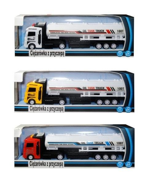 Miks wzorów, towar wysyłany losowo. Cena za sztukę.Kolorowa ciężarówka z przyczepą ze światłem i dźwiękiem. Posiada 3 przyciski, które wydają 3 różne dźwięki: cofania, klaksonu, odpalania silnika. Kiedy dziecko wciśnie przycisk poza dźwiękiem będą także migać światełka ciężarówki. przeczytaj całość