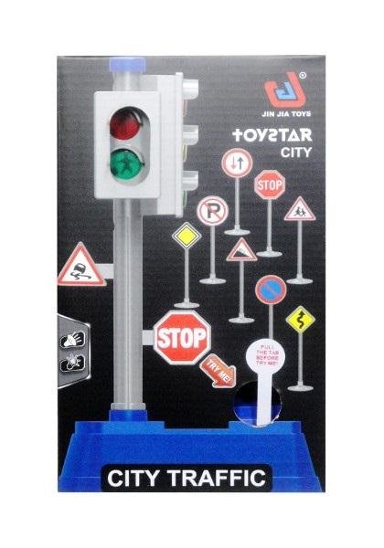 Plastikowy sygnalizator świetlny na baterie w zestawie z matą uliczną. Produkt działa na baterie typu AA. Baterie nie znajdują się w zabawce. Podane wymiary są wymiarami opakowania. Zabawka zapakowana w kartonowe opakowanie. przeczytaj całość