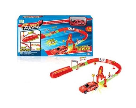 Zabawka tor dla dzieci z wyrzutnią. Niech Twój samochód poleci jak najdalej. Zestaw składa się z 16 elementów i zawiera 1 samochód wyścigowy. Produkt zapakowany w kartonowe opakowanie z przezroczystym okienkiem.Produkt dla dzieci od 3 lat. przeczytaj całość