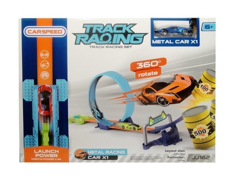 Zabawka tor dla dzieci z pętlą. Zestaw zawiera 1 metalowe auto wyścigowe. Produkt zapakowany w kartonowe opakowanie z przezroczystym okienkiem. Produkt dla dzieci od 6 lat. Podane wymiary są wymiarami opakowania. przeczytaj całość