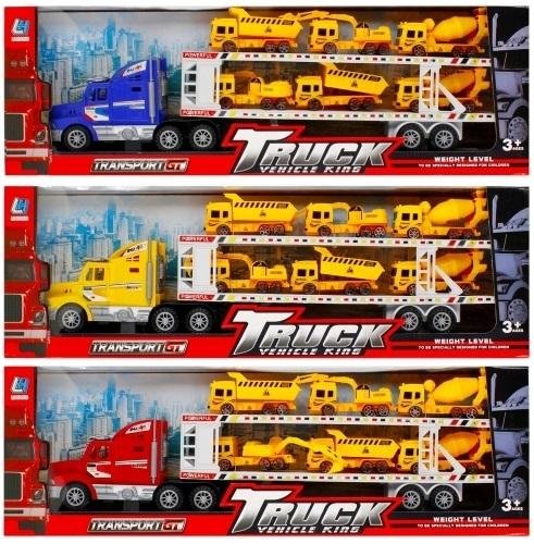 Mix wzorów.Towar wysyłamy losowo.Zalety produktu: rozwijanie wyobraźni dziecka, laweta posiada funkcję pull&back dzięki czemu po pchnięciu pojazdu kontynuuję jazdę samodzielnie, ciężarówki znajdujące się na lawecie posiadają ruchome elementy, występuje w trzech wersjach kolorystycznych: czerwony,...