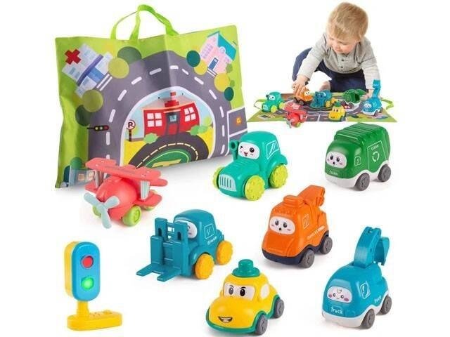 Miękkie pojazdy - 8 sztuk w torbie, która staje się matą do zabawy. przeczytaj całość