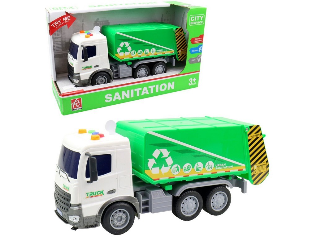 Śmieciarka z napędem sprężynowym i na baterie, z podświetleniem i dźwiękiem, 25 x 8 x 14 cmZabawka przeznaczona dla dzieci powyżej 3 lat.Wymiary zabawki: 25 x 8 x 14 cm.Materiał: plastik.Opakowanie: pudełko typu window box.Produkt przeznaczony dla chłopców.Do działania wymagane są 3 baterie... przeczytaj całość