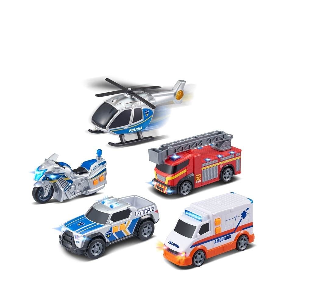Flota pojazdów spieszy na ratunek! W dużym zestawie znajduje się aż 5 pojazdów użyteczności publicznej, wzorowanych na pełnowymiarowych maszynach, które dbają o bezpieczeństwo ludzi. 4 pojazdy zasilane są bateryjnie (ambulans, straż pożarna, samochód policyjny i motocykl policyjny), dzięki czemu...