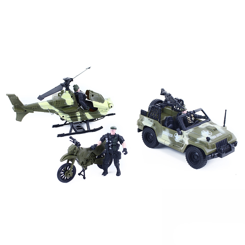 Parádní sada pro všechny malé vojáky! Tento ARMY set obsahuje helikoptéru, motorku, vojenský jeep a tři vojáky. Tato sada nesmí chybět ve tvé armádní jednotce! Auto jezdí na volný chod. przeczytaj całość