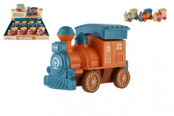 Lokomotiva/vlak plast 13cm na setrvačník 3 barvy 12ks v boxu