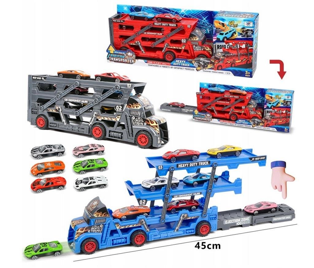 Mix wzorów. Towar wysyłany losowo. Cena dotyczy jednej sztuki.W zestawie: 3-piętrowa laweta 30 cm., 6 autek 7 cm., Zestaw naklejek, funkcje: laweta z rozkładanym zjazdem dla samochodów, z przodu kabiny katapulta autek, wym. Opk: 40,5 x 15 x 7,5 cm., 3+ przeczytaj całość