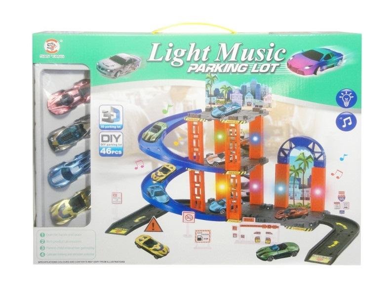 Zestaw parking - 3 poziomy wraz z 4 samochodzikami. Teraz samochodziki znajdą bezpieczne miejsce do parkowania. Parking świeci kolorowym światełkiem i gra melodie. Parking do samodzielnego złożenia składa się z 46 części. #&Produkt zapakowany w kartonowe opakowanie z uchwytem. #&Zestaw przeznaczony dla dzieci od 3 lat. #&Podane wymiary stanowią wymiar opakowania.