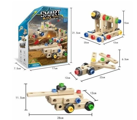 Zestaw Pojazdy 3 w 1 do skręcania 40 el,Zestaw majsterkowicza to zabawka doskonale rozwijająca zdolności manualne oraz wyobraźnię przestrzenną. W skład zestawu wchodzi 56 el.: śruby, nakrętki, śrubokręt, klucz płasko oczkowy, elementy do łączenia. przeczytaj całość
