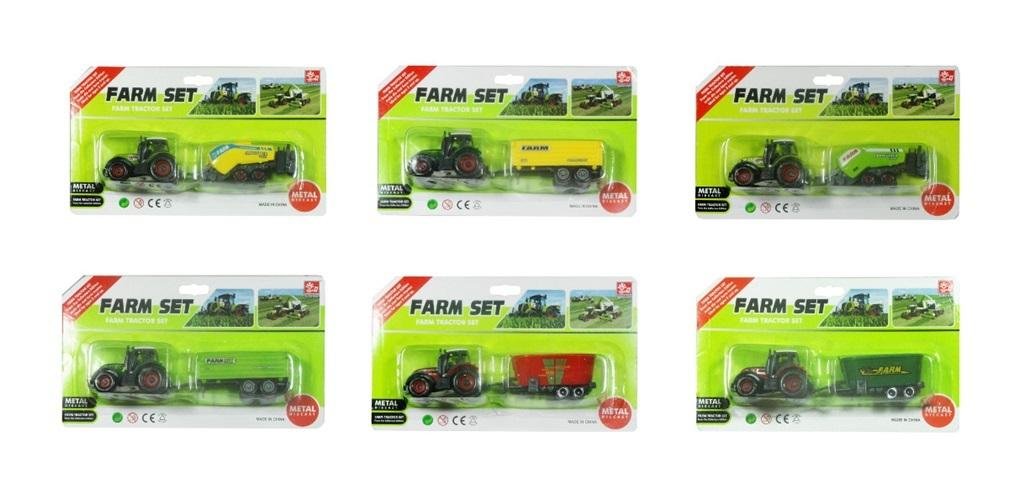 Zestaw traktor wraz z przyczepą. Posiada plastikowe i metalowe części. Produkt występuje w kilku wersjach, wybierany losowo. Cena dotyczy jednej sztuki. Produkt zapakowany w kartonową podstawkę z przezroczystym kloszem. Podane wymiary są wymiarami opakowania. Produkt dla dzieci od 3 lat. przeczytaj całość