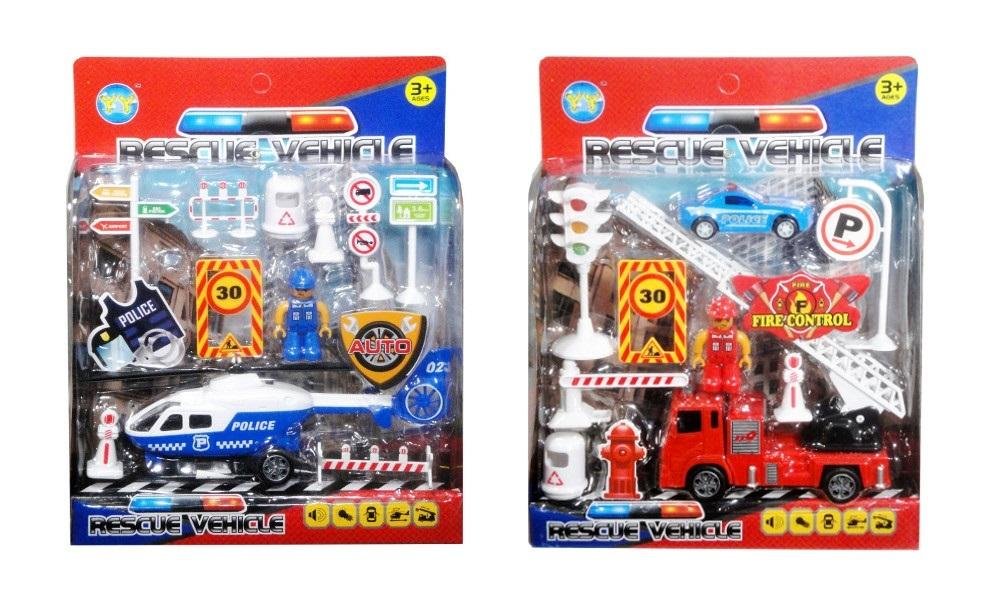 Drogowy zestaw ratunkowy pomoże w niejednej akcji. W zestawie helikopter/wóz strażacki, znaki drogowe, a także policjant lub strażak. Pojazdy posiadają ruchome części, świecą i wydają dżwięki. Wybrane elementy zestawy działają na baterie typu AG13. Baterie znajdują się w zabawce. Zestaw dla...