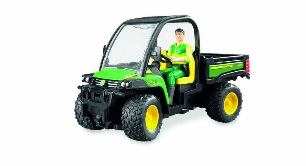 John Deere Gator XUV 855D to szczegółowo wykonany model quada z charakterystycznym designem marki John Deere. Przednia i tylna szyba wykonane są z przezroczystego, niezbijalnego poliwęglanu, nie brakuje tylnego zaczepu holowniczego, profilowanych opon i tylnej uchylnej skrzyni ładunkowej. Pzednią osią można sterować za pomocą kierownicy, a na fotelu kierowcy siedzi figurka w oryginalnym ubraniu John Deere. Niemiecka marka Bruder od 80 lat, jako firma rodzinna, produkuje realistyczne modele środków transportu i maszyn budowlanych najwyższej jakości. Zabawki Bruder są projektowane na wzór prawdziwych maszyn, z dbałością o najmniejsze detale i funkcjonalnymi mechanizmami. Zabawki Bruder oraz ich akcesoria są ze sobą kompatybilne i elastyczne. Każdy chłopiec zachwyca się modelami samochodów i maszyn, ale marka Bruder oferuje coś więcej - funkcjonalność, realizm, detale i jakość zastosowanych materiałów. Marka Bruder dzieli zabawki na trzy serie - Bruder - RoundMax, seria Profi i seria Mini.