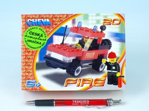Uzupełnij swoje miasto o posterunek strażacki. Ten zestaw klocków Cheva - posterunek strażacki jest jednym z dodatków do podstawowych wersji zestawów Cheva. Zestaw zawiera pojedyncze klocki i akcesoria, z których można zbudować posterunek strażacki i przenieść się w świat strażaków i patroli strażackich. Zestaw to prezent, który ucieszy każde dziecko. Klasyczne czeskie klocki Cheva to zestaw zmienny i politechniczny, który pobudza zręczność manualną dziecka, wyobraźnię i kreatywność. Zestawy Cheva składają się z różnych elementów, które można dowolnie łączyć. Dzięki temu mogą powstać wspaniałe miasteczka zawierające policję, straż pożarną, dworzec, stację benzynową, usługę taksówkową itp. Pobudza zręczność manualną, wspiera myślenie i fantazję. Odpowiednie dla dzieci od 6 lat.
