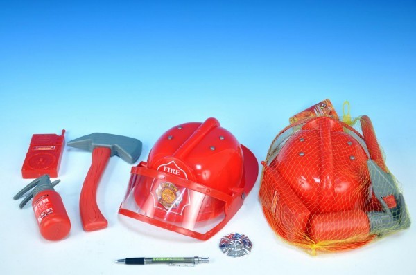 Přilba hasičská plast 29x20cm s doplňky v síťce