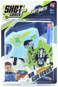 W zestawie: pistolet, 2 naboje, pająk cel, Funkcje: pistolet po naciśnięciu spustu wystrzeliwuje pocisk, pająk-cel po przyczepieniu do pionowej powierzchni pełza w dół, zabawa polega na strzelaniu do poruszających się celów, Pozostałe informacje: dł. pistoletu 13,5 cm, wym. opak. 29 x 19,5 x 4,5... przeczytaj całość