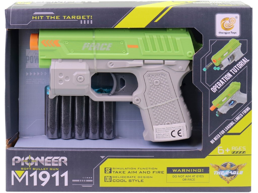 Tato pistole se střelkami je vhodná pro kluky od 3 let. Je vyrobena z kvalitního plastu a má rozměry 16 x 22 x 18 cm. Pistole nepotřebuje baterie a dodává se v obalu typu window box. Ideální hračka pro zábavné venkovní hrátky. przeczytaj całość
