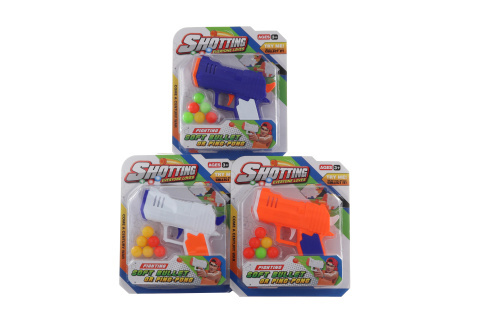 Plastová pistole na malé plastové míčky. Pistole se natáhne, vloží míček a vystřelí. Baleno na kartě. Rozměry balení 23x20x3 cm. Věk 3+ przeczytaj całość