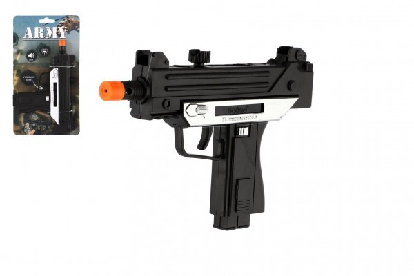 Pistole samopal plast 17,5cm na baterie se zvukem se světlem černá na kartě