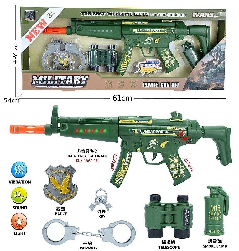 Xestaw wojskowy, z karabinem na baterie, światło, dźwięk, wibracje; 61x24x5,5cm przeczytaj całość