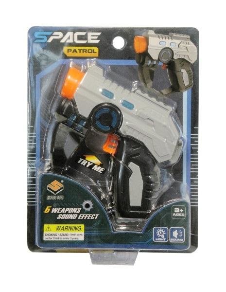 Plastikowy pistolet strzałki. Kiedy wciśniemy spust pistoletu produkt świeci kolorowym światełkiem oraz wydaje kosmiczne dźwięki strzelania. Zabawka działa na baterie typu AAA. Baterie nie są załączone do zabawki. Produkt dla dzieci od 3 lat. Zabawka zapakowana w kartonową podstawkę z... przeczytaj całość