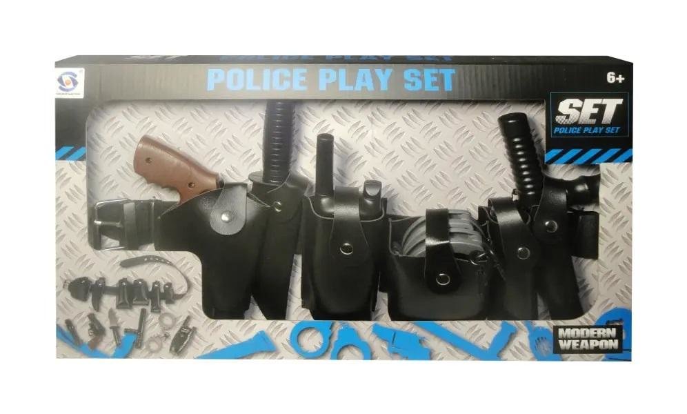Zestaw policyjny na pasie. W zestawie m.in.: pistolet, pałka, kajdanki, krótkofalówka, nóż. Ponieważ wszystkie akcesoria są umieszczone na pasie dzieci z łatwością będą mogły z nich korzystać podczas zabawy. Produkt zapakowany w kartonowe opakowanie. Podane wu=ymiary są wymiarami opakowania.... przeczytaj całość
