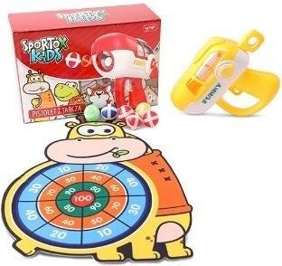 W zestawie: pistolet, tarcza z haczykiem do zawieszenia na naklejkę, 6 piłek na rzep. Funkcje: ładowanie pistoletu - piłki wkłada się do pistoletu przez klapkę na górze zabawki, strzelanie: pociągnąć za zawleczkę z tyłu pistoletu, przechylić do do przodu tak, by kulka wpadła do komory wystrzału,...