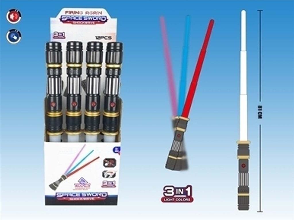 Miecz świetlny 3 kol w 1, B/O 12szt/display 20x15,5x44,5Miks wzorów, towar wysyłany losowo. Cena za sztukę. przeczytaj całość