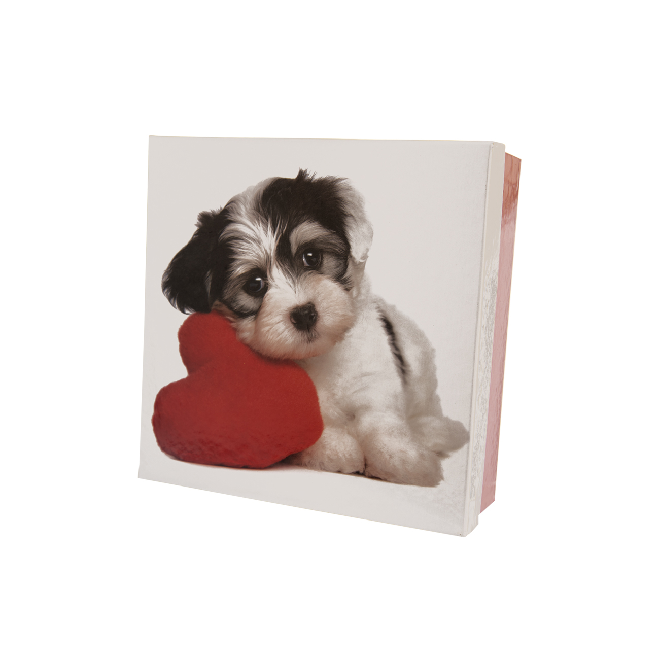 Krabice dárková papír DOG bílá/červená 18x18x7 cm