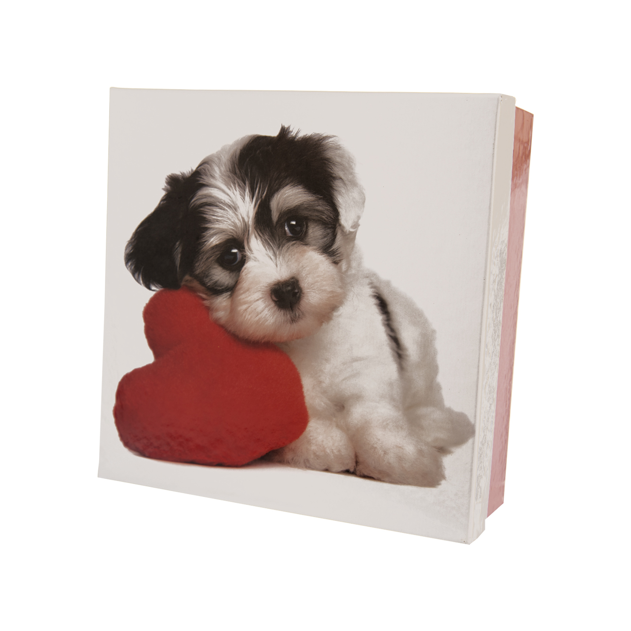 Krabice dárková papír DOG bílá/červená 20x20x8 cm