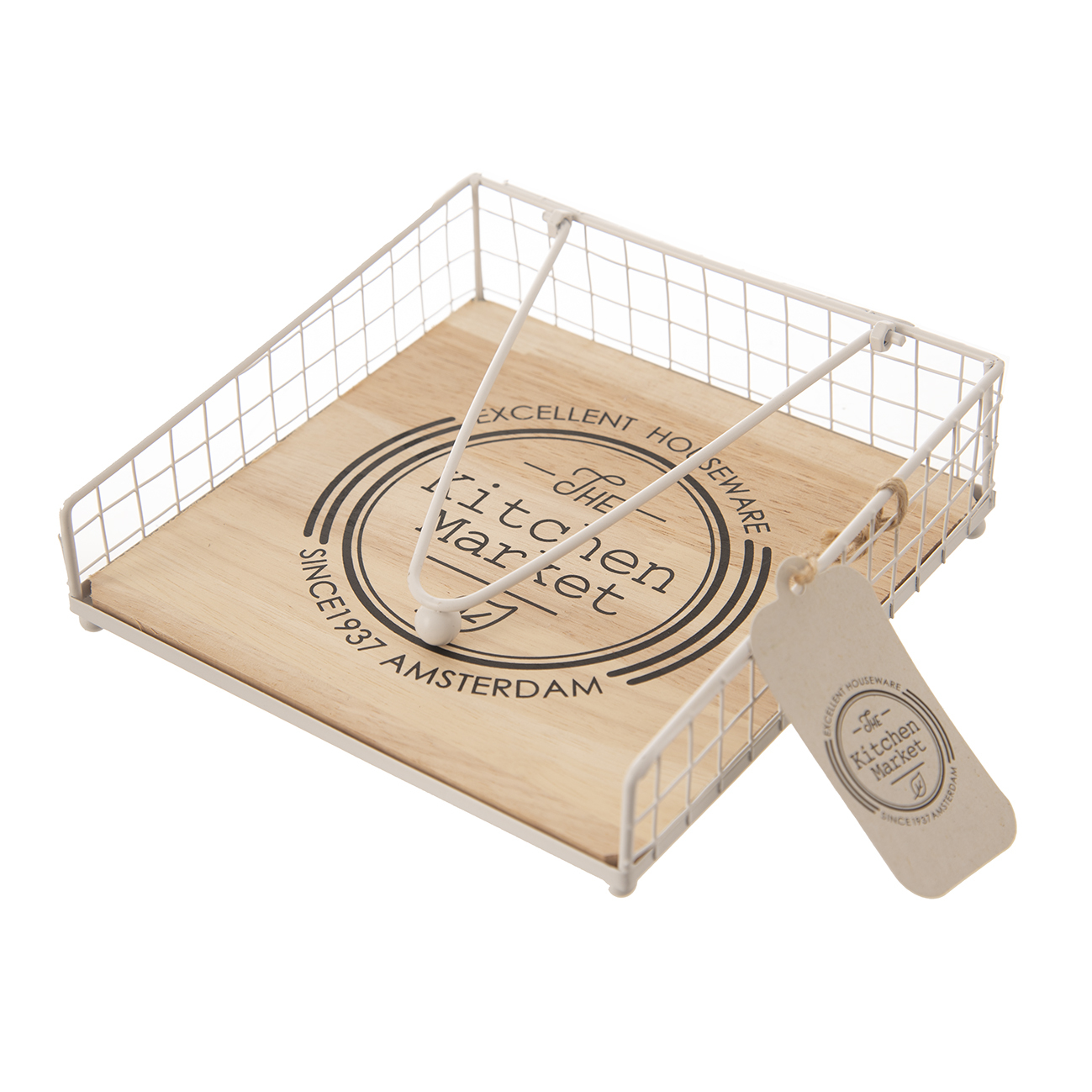 Stojan na ubrousky dřevo/kov bílý 18x18x5 cm