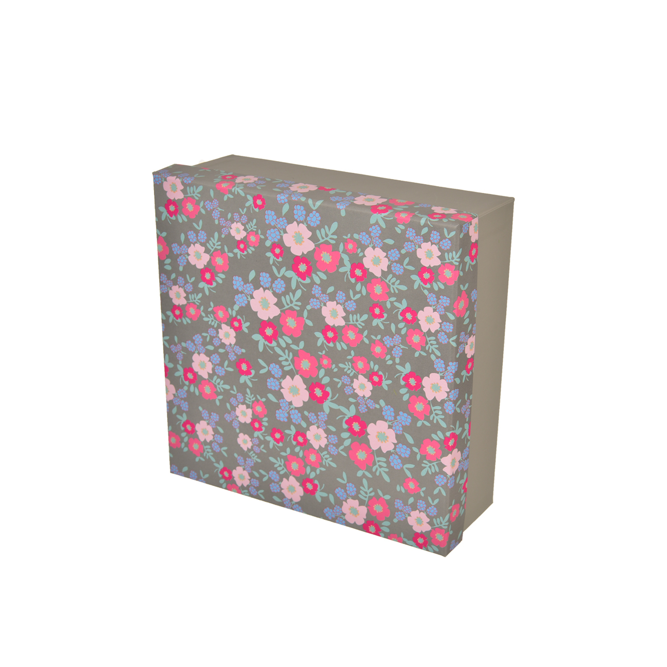 Krabice dárková papír kytička šedá 18x18x7 cm