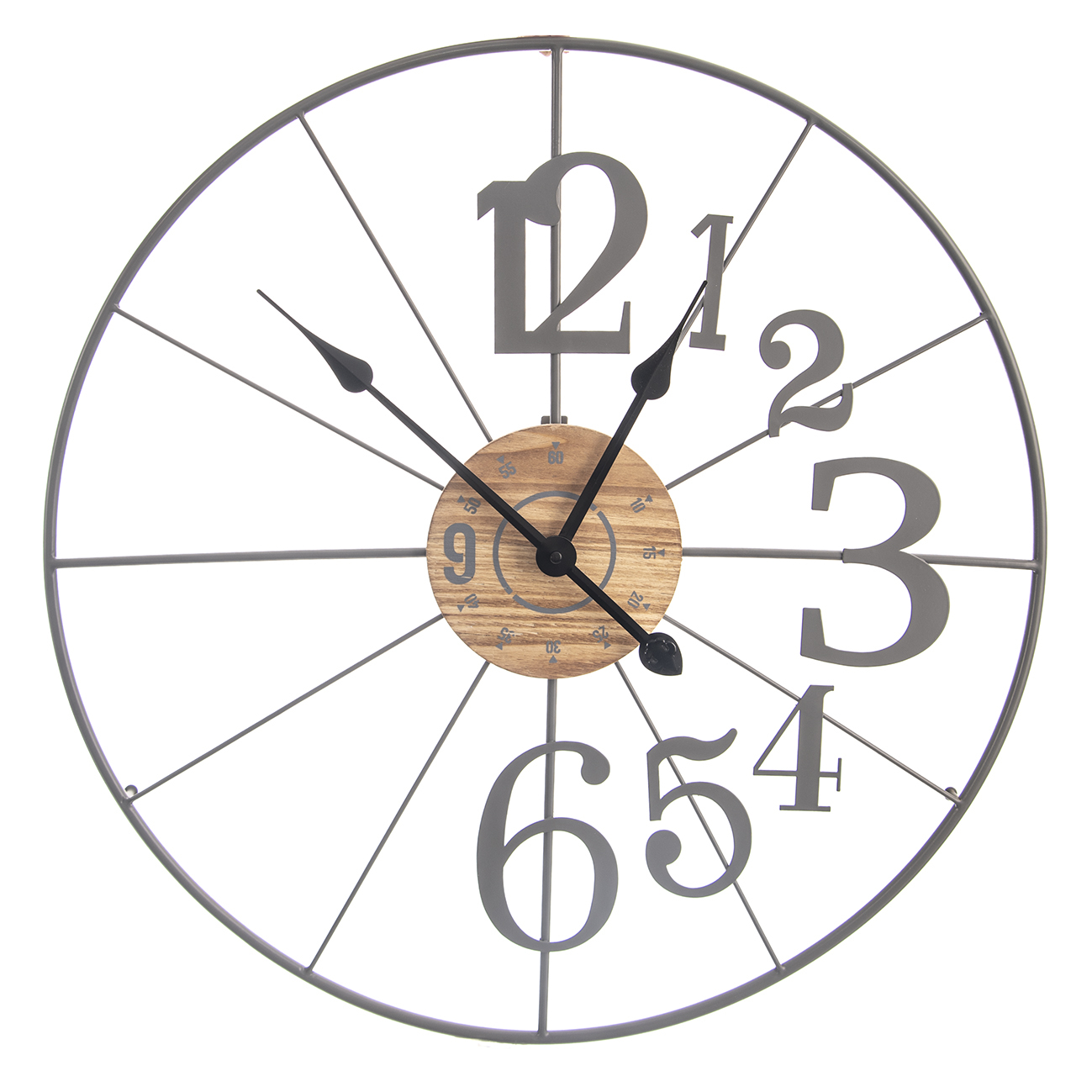 Hodiny nástěnné dřevo/kov šedé pr. 60 cm