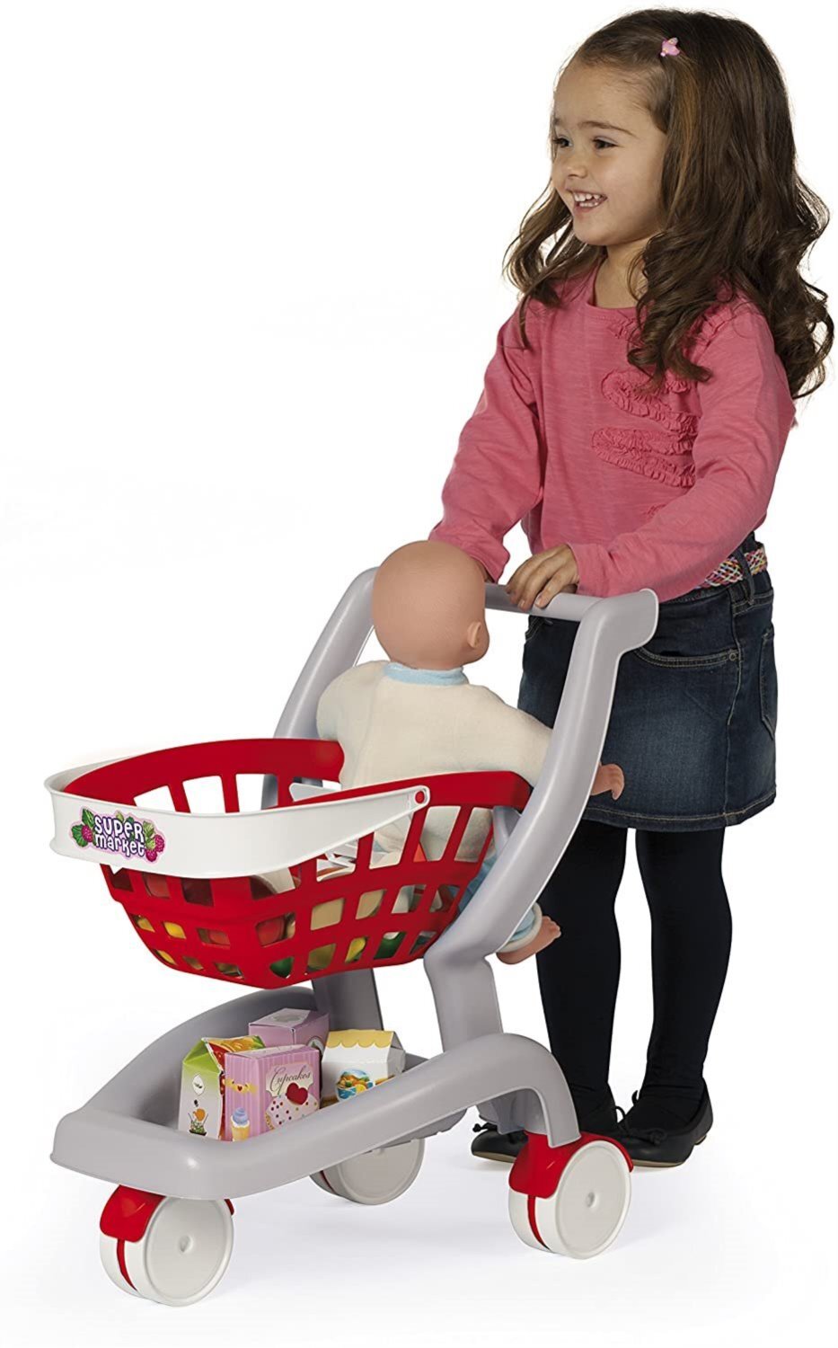 Nákupní vozík 2v1 od CHICOS -  nejlepší ke všem nákupům. Má sedátko pro panenku a lze z něj udělat košík. Velký nákupní vozík 2v1 je dokonalou hrou na nakupování. Součástí hračky je 18 kusů plastových a papírových potravin.  Vhodné pro děti od 3 let. Rozměry složeného výrobku: 74 x 46 x 34 cm przeczytaj całość